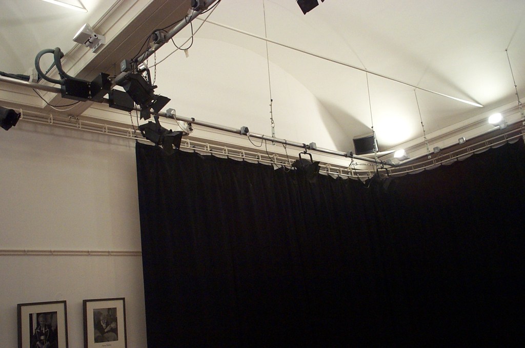 - Additional “display lighting” is available. There’s a reasonable number of what look like PAR38 lamps designed for lighting the pictures on the walls, exhibits etc. These plug into the various 5A sockets on the lighting grid – these sockets group to three switches in the control room.